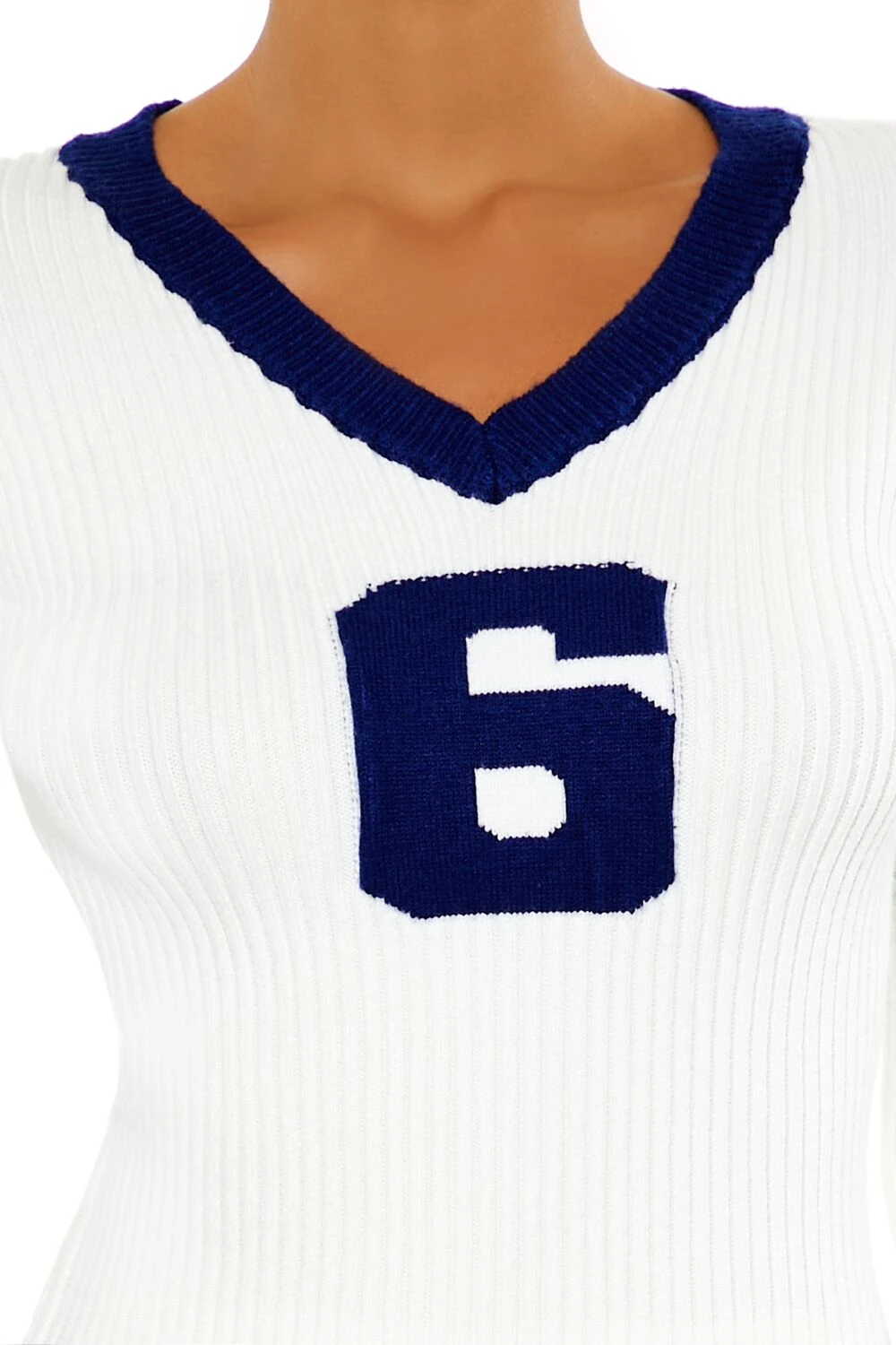 The Aunovelle 6 Graphic V-Neck Sweater combines a sporty, casual style with comfort. Featuring a ribbed knit construction and contrasting trim, this sweater is designed with a flattering V-neckline and long sleeves for a timeless look. The front ‘6’ graphic adds a bold statement, making this sweater perfect for those who want to stand out in a stylish, easy-to-wear piece.
