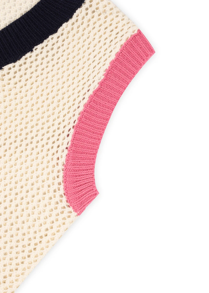 - Colorblock detailing enhances the modern, chic look of the vest.