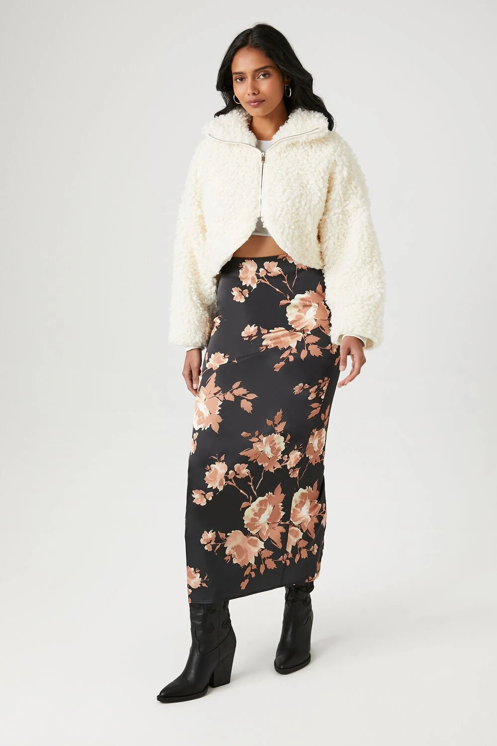 - Design: Faux shearling moto jacket with funnel neck, zip-up closure, and modern fit