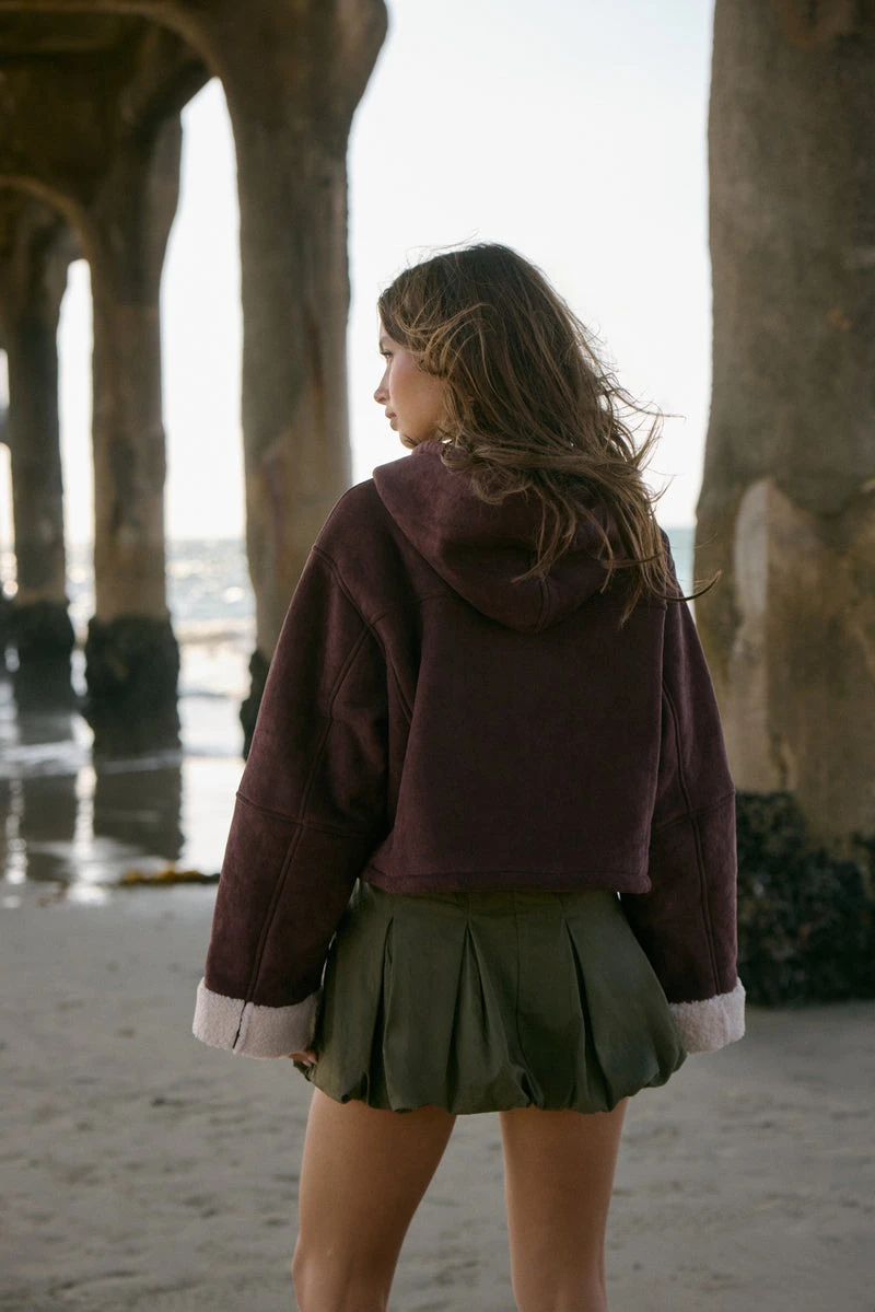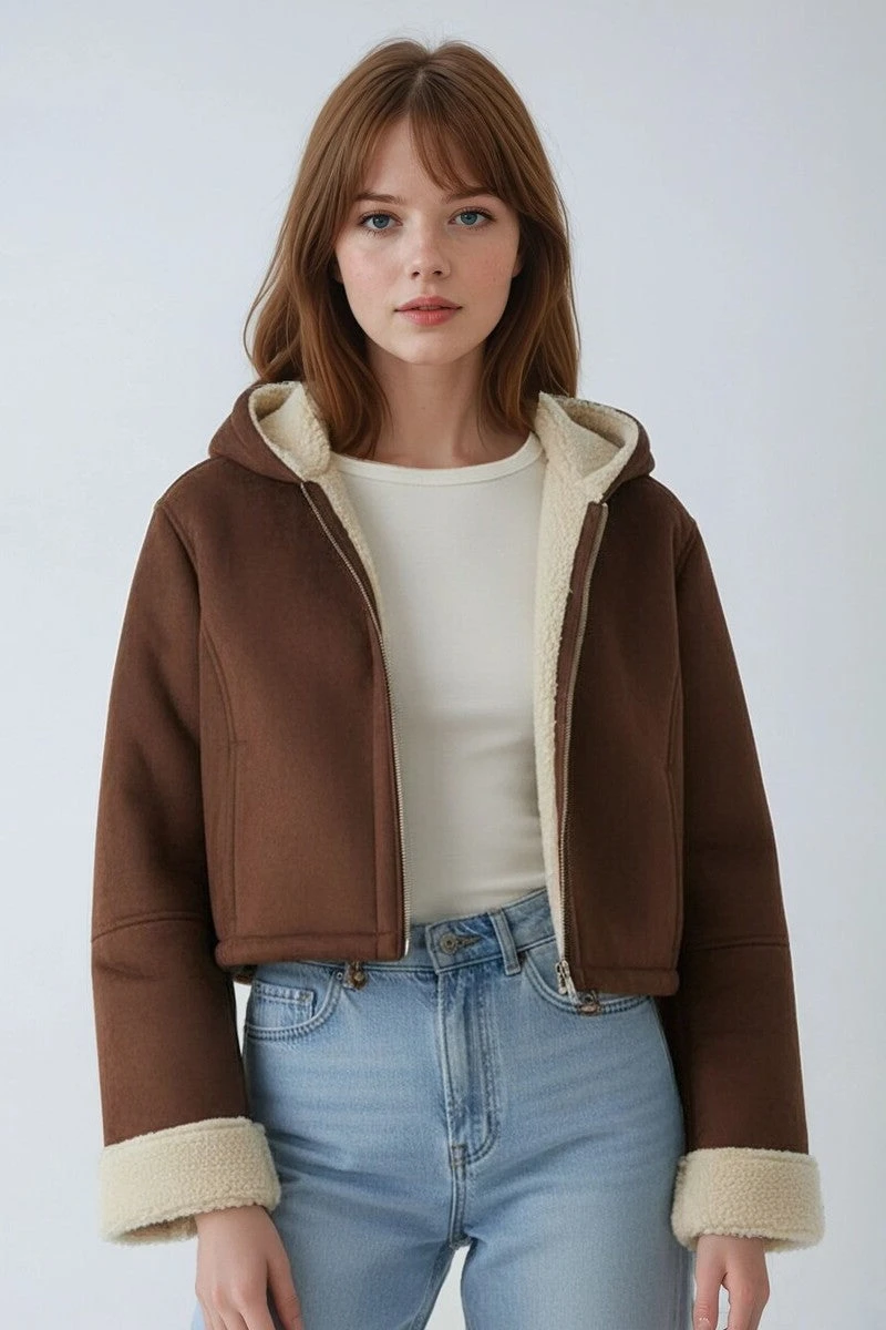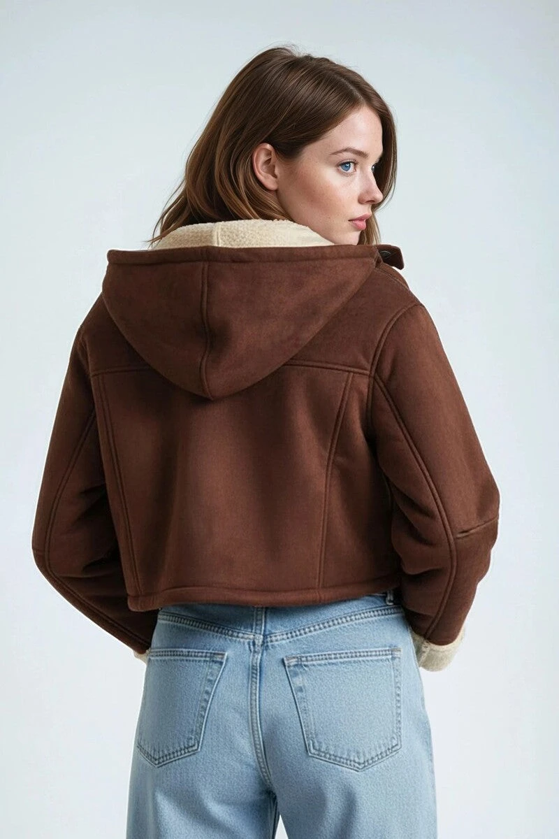 Aunovelle Faux Suede Cropped Hooded Jacket