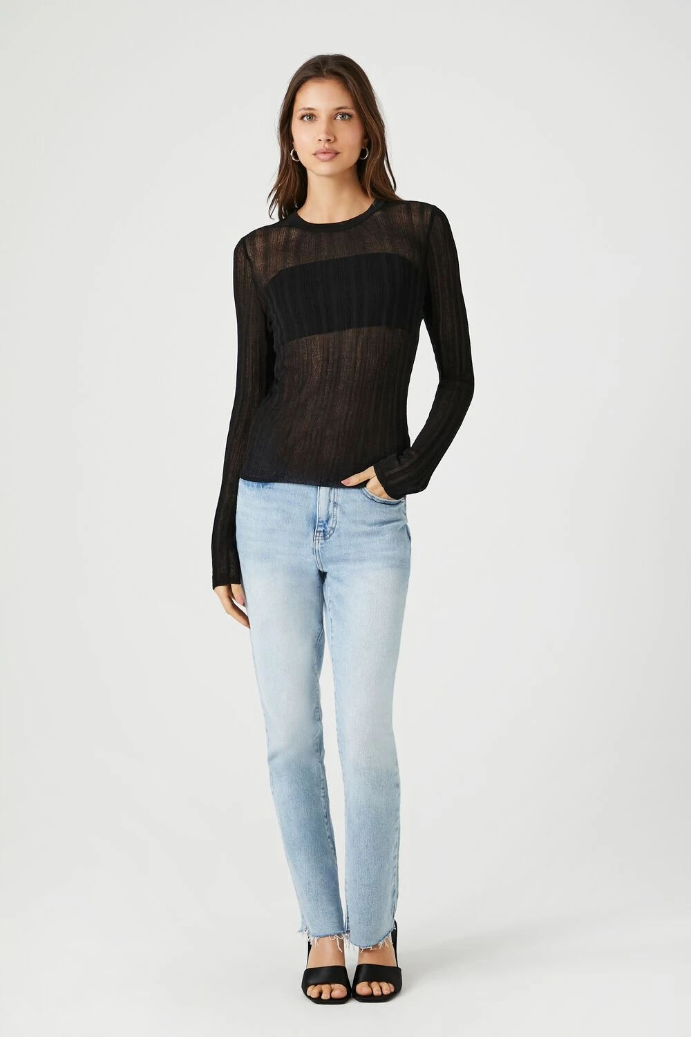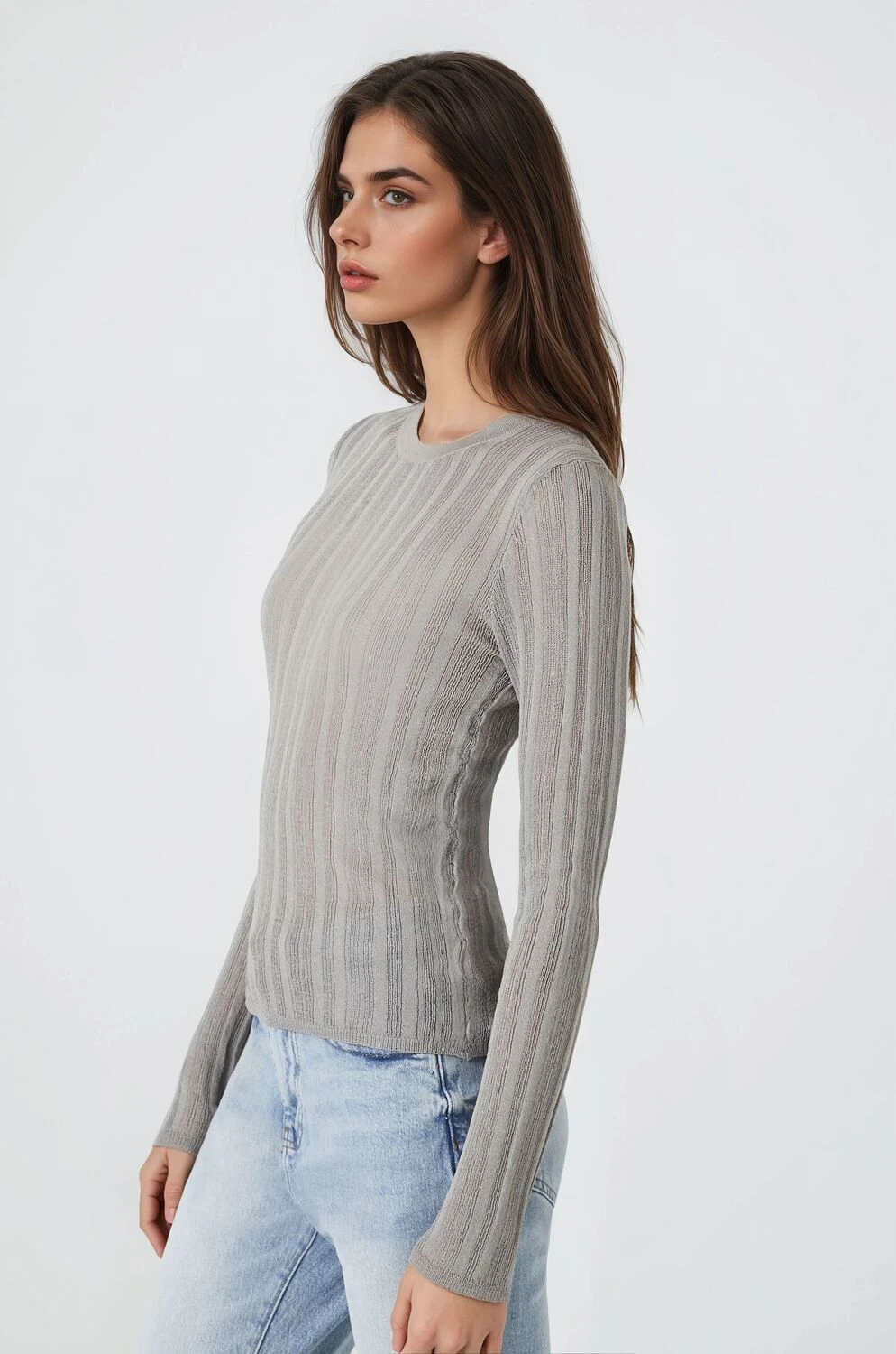 - Design: Ribbed knit, round neckline, and long sleeves