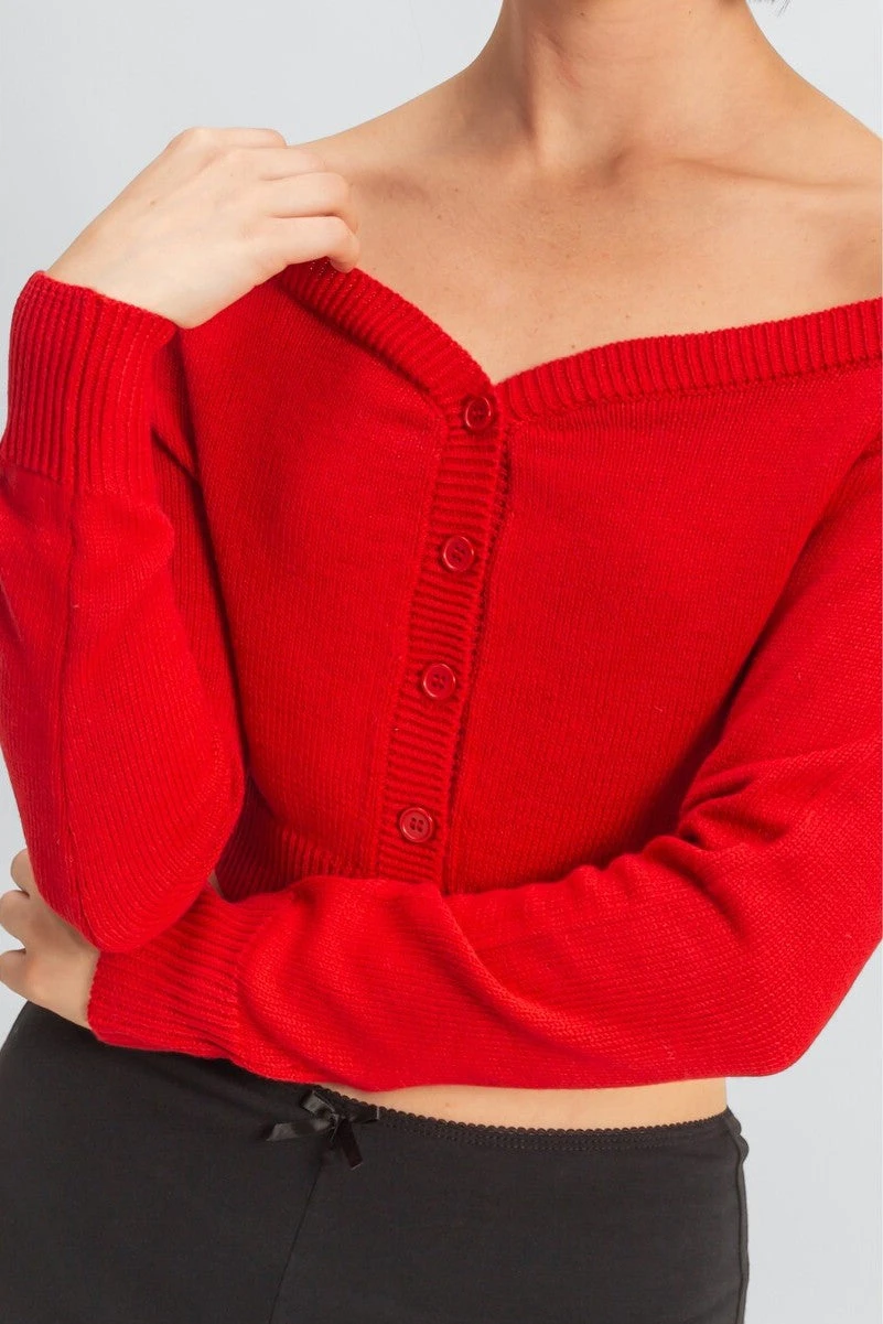 Aunovelle Off-The-Shoulder Cropped Button-Front Sweater
